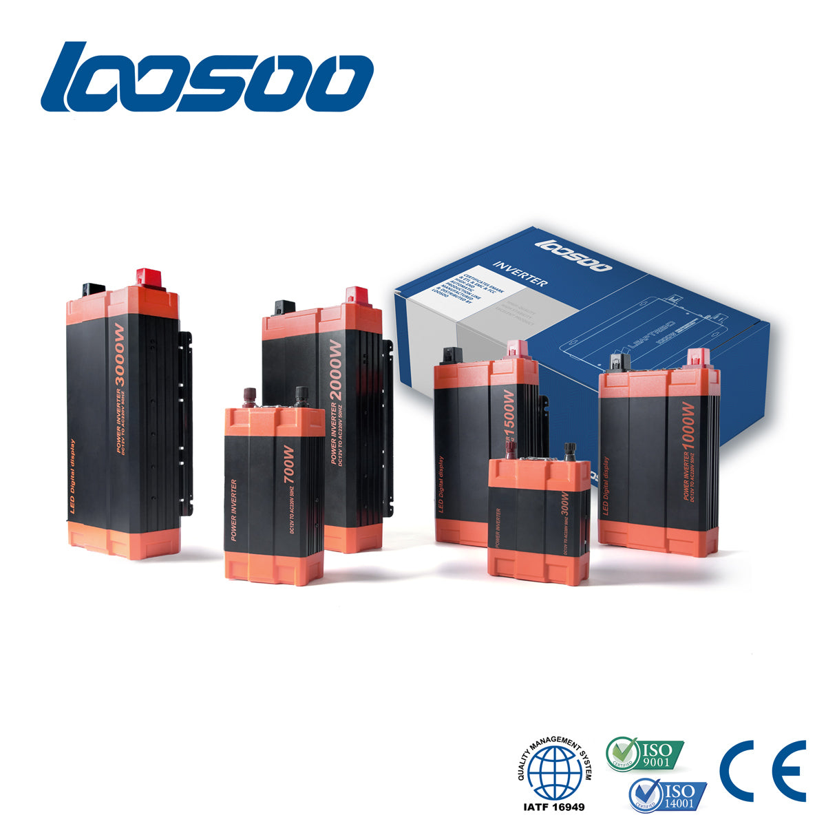 LOOSOO provides a wide range of inverter types, including Pure Sine Wave Power Inverters, Modified Sine Wave Power Inverters, Inverters/Chargers, and Solar Inverters.
